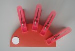 Берем полоску картона и прикрепляем к ней зеленые прищепки.